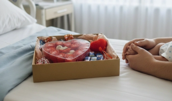 מארז שוקולדים + פרחים ובובה בקופסת לב